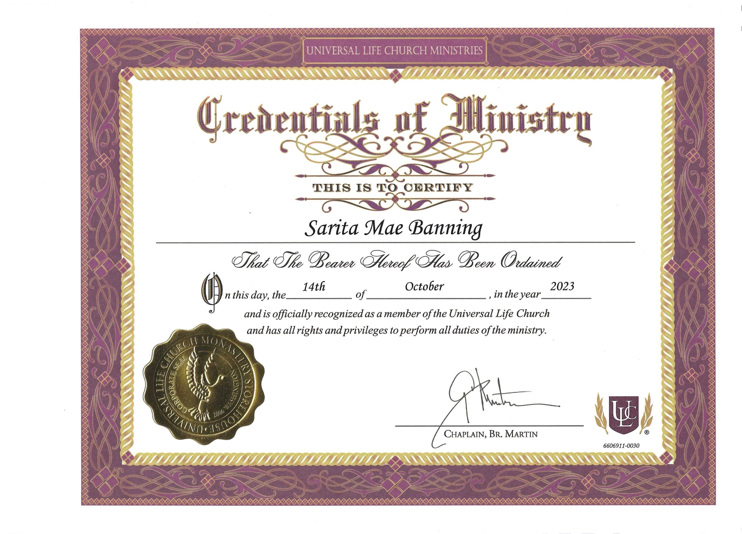 Ordained Minister (ULC.org)